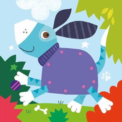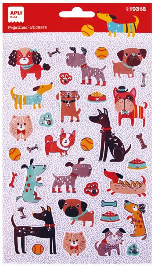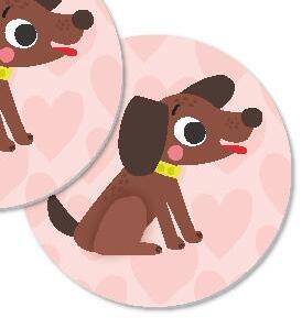 180 x 60 x 180 mm Complete the funny dogs with round educational stickers considering colors and sizes