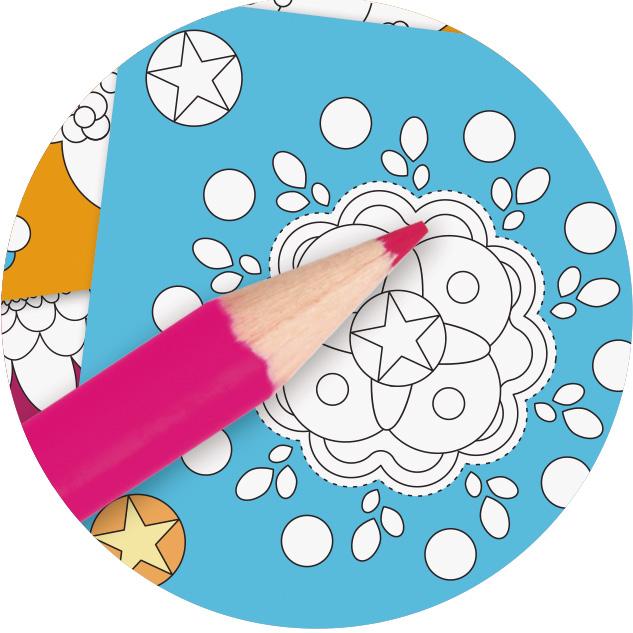 Choose one of the patterns in relief, place it under the sheet and paint with the colored pencils. The patterns appear as if by magic!