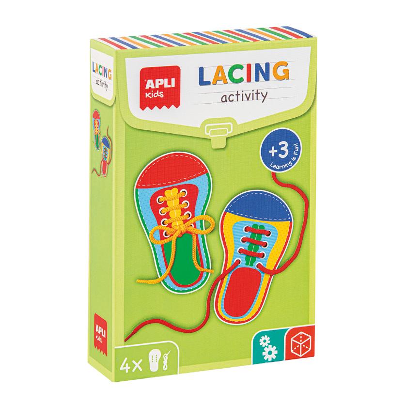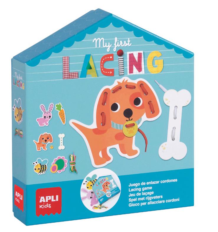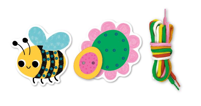 Content: 8 XL pre-cut and perforated cards with different shapes | 6 laces of assorted colors