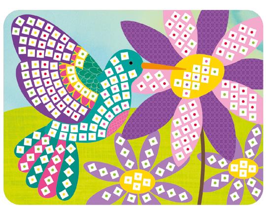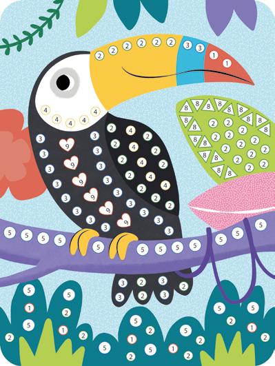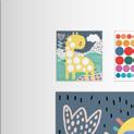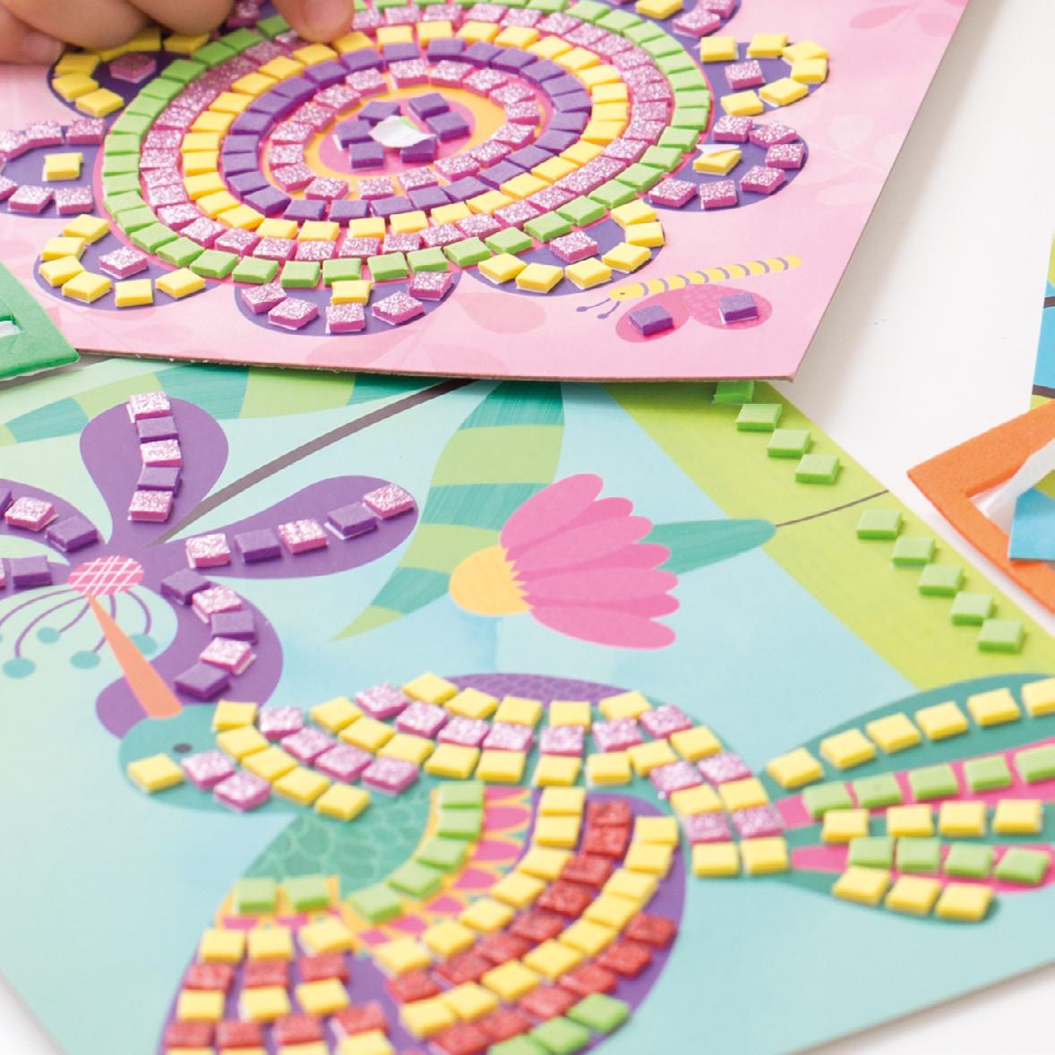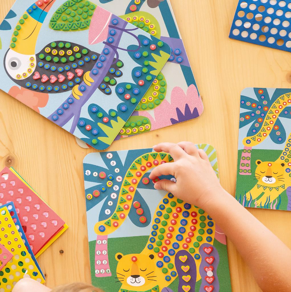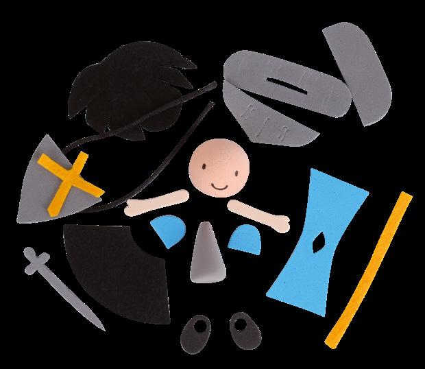 Content: 4 illustrated cards | 10 pre-cut and adhesive EVA foam of different colors | 4 guide cards with examples
