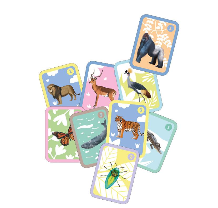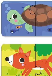 Content: 6 cards with different animals in their environment | 10 stamps with different shapes and colors | 1 book with instructions and examples
