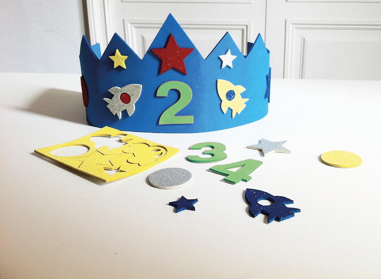 Content: 1 crown | Adhesive EVA foam numbers from 0 to 9 | Pre-cut and adhesive glitter EVA foam pieces