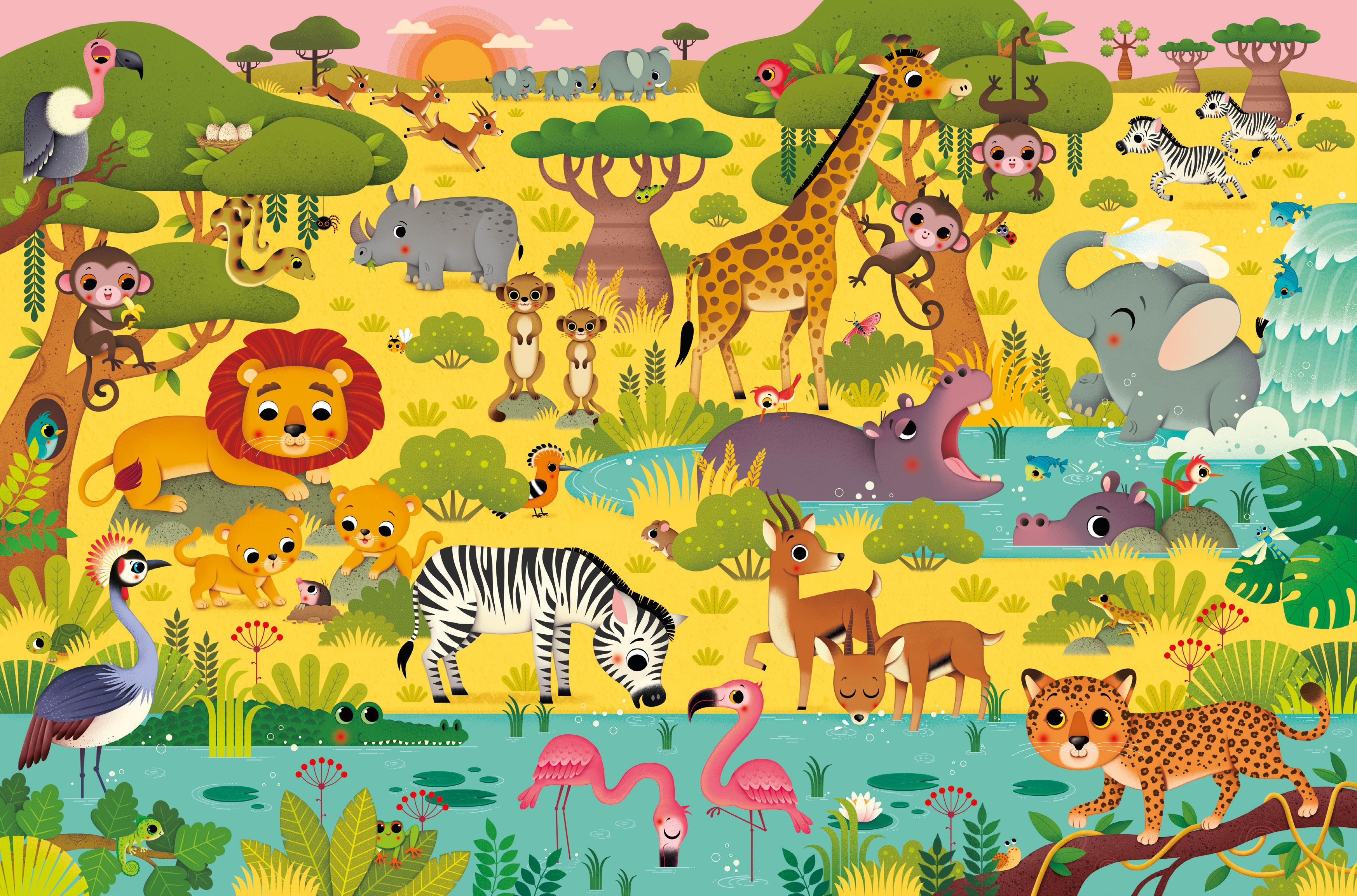 More than 50 realistic animals so that children can learn about the animal world and its habitat