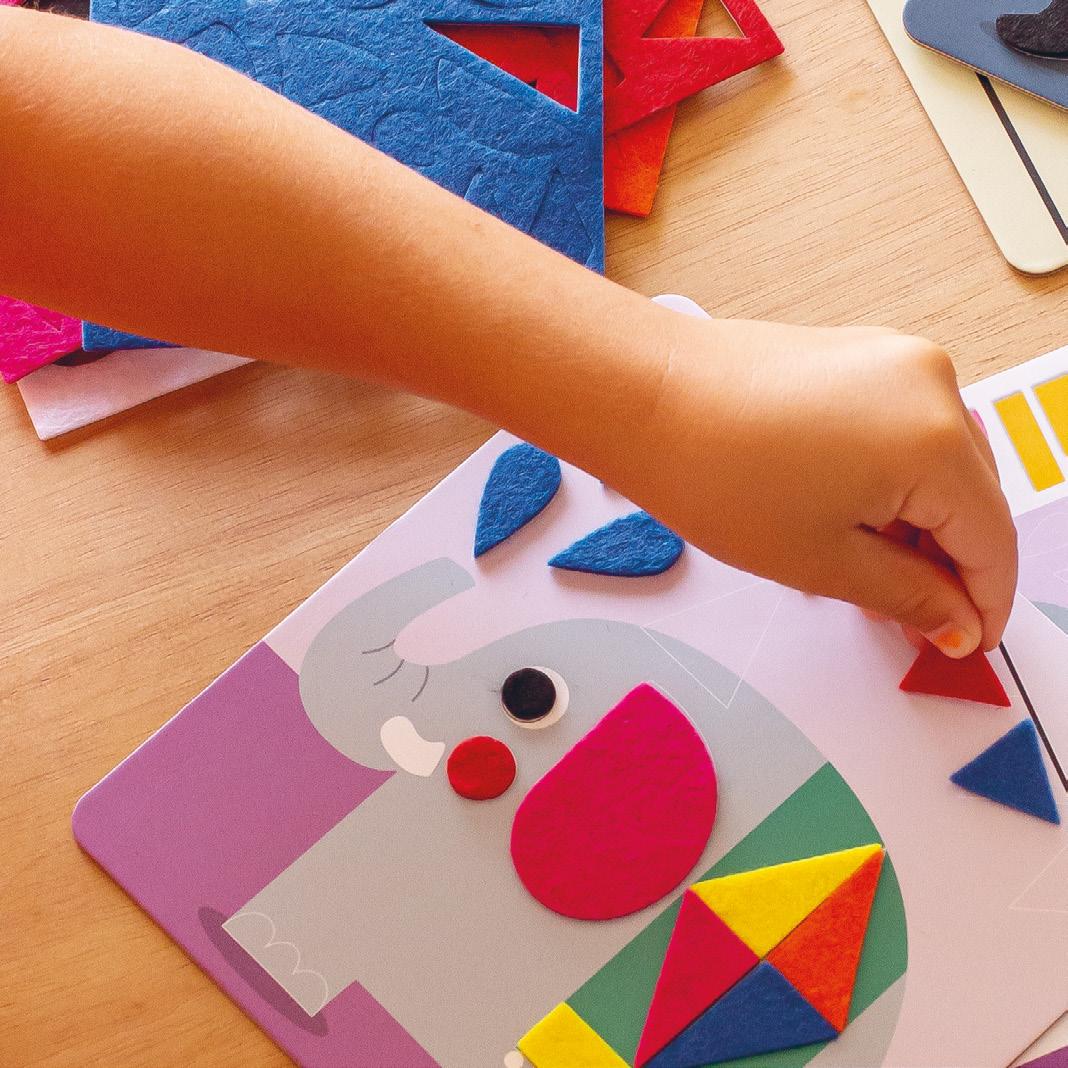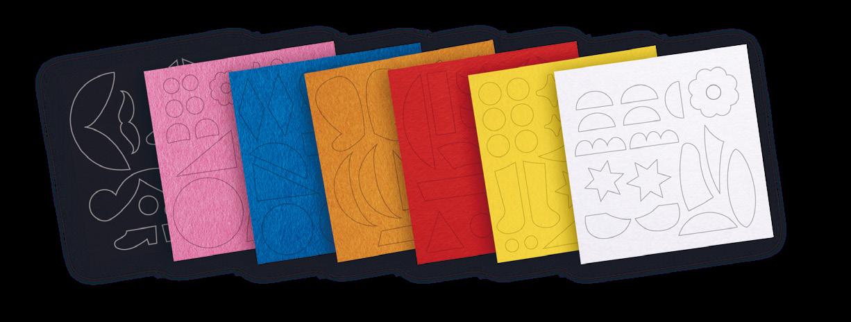Content: 6 illustrated cards | 7 sheets of adhesive and pre-cut felt | 1 book with instructions and examples