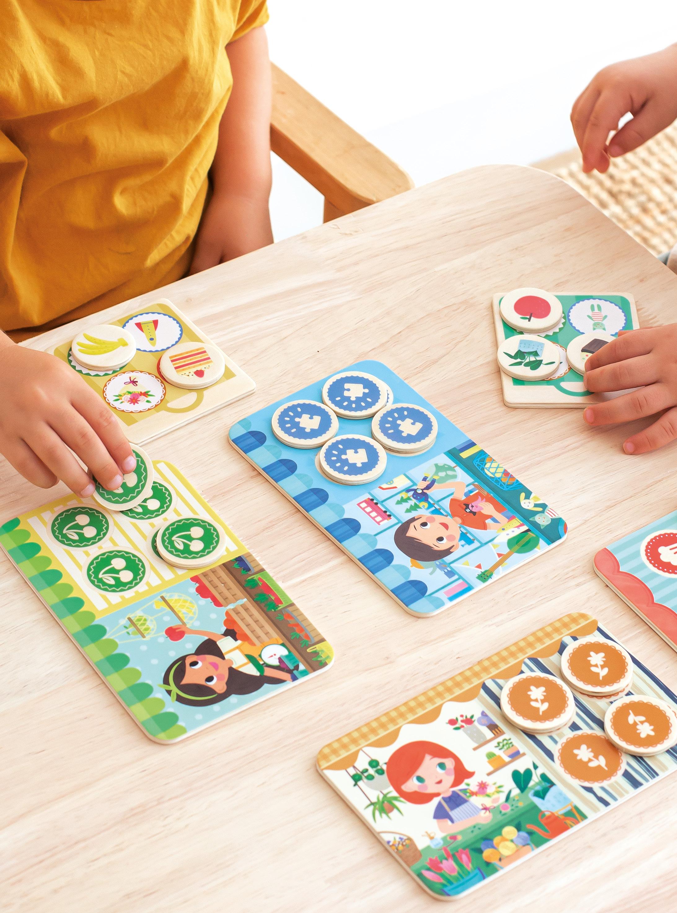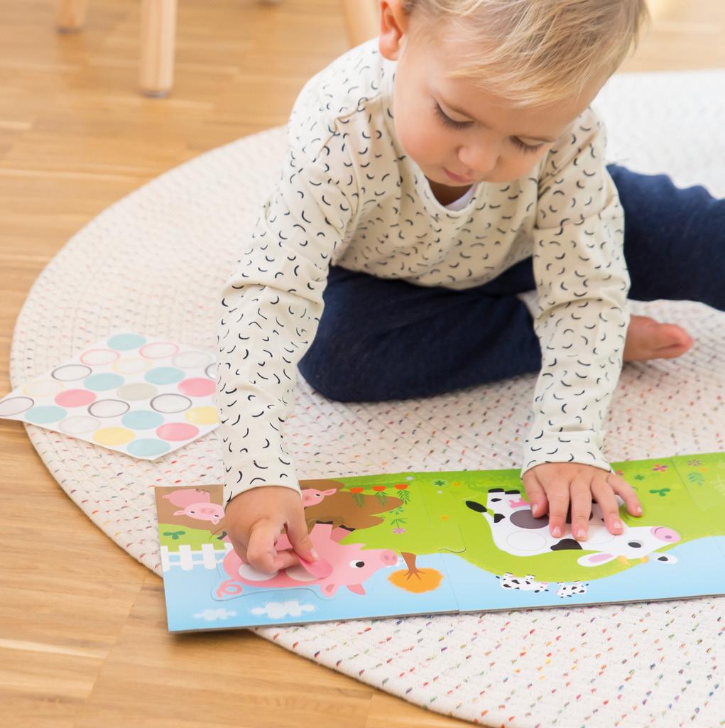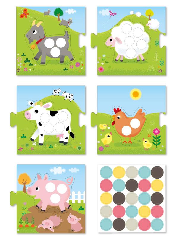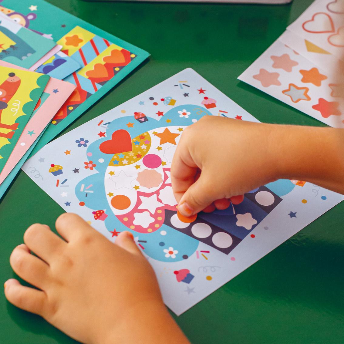 Content: 8 illustrated cards | 5 sheets of removable round educational stickers | 1 full-color example guide