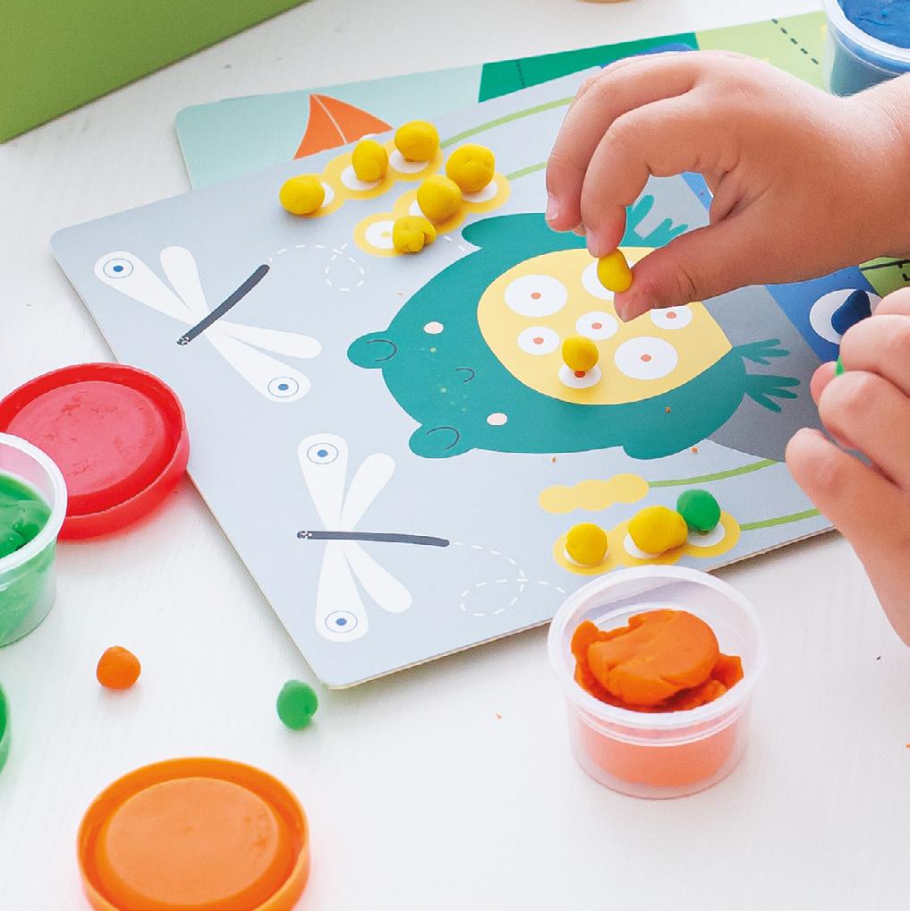 Fill in the designs by making clay balls and stick them on the sheets associating colors and sizes. Clay can be used over and over again!
