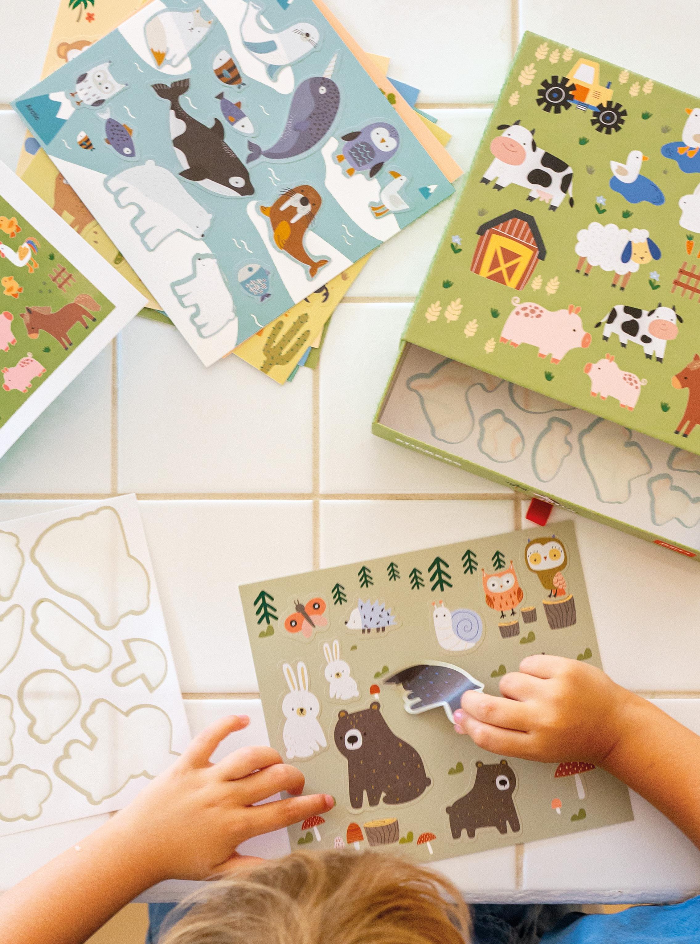 Content: 8 illustrated cards | 8 sheets of removable educational stickers | 1 full-color example guide
