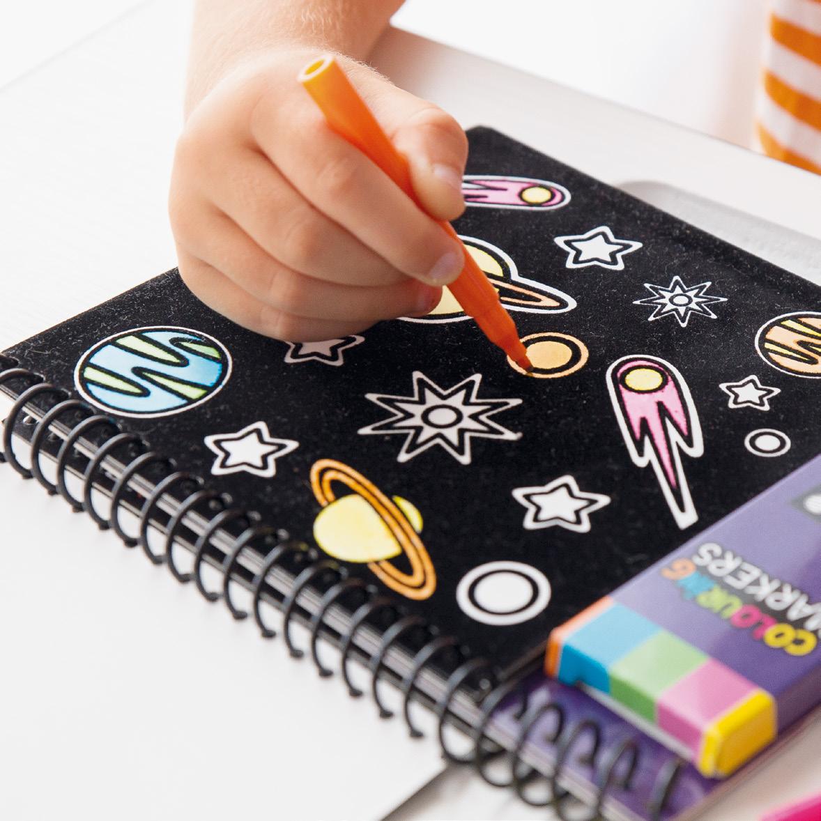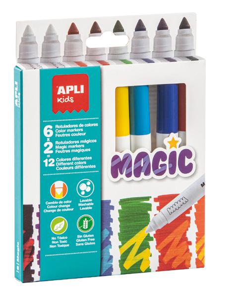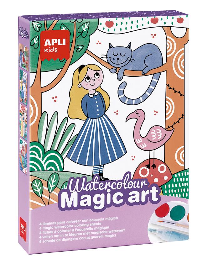Paint with watercolors and then discover the magical effect by creating patterns and shapes with the magic marker included. Become an artist!