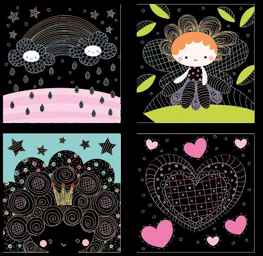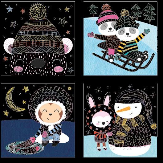 4 illustrated cards | 10 pre-cut and adhesive EVA