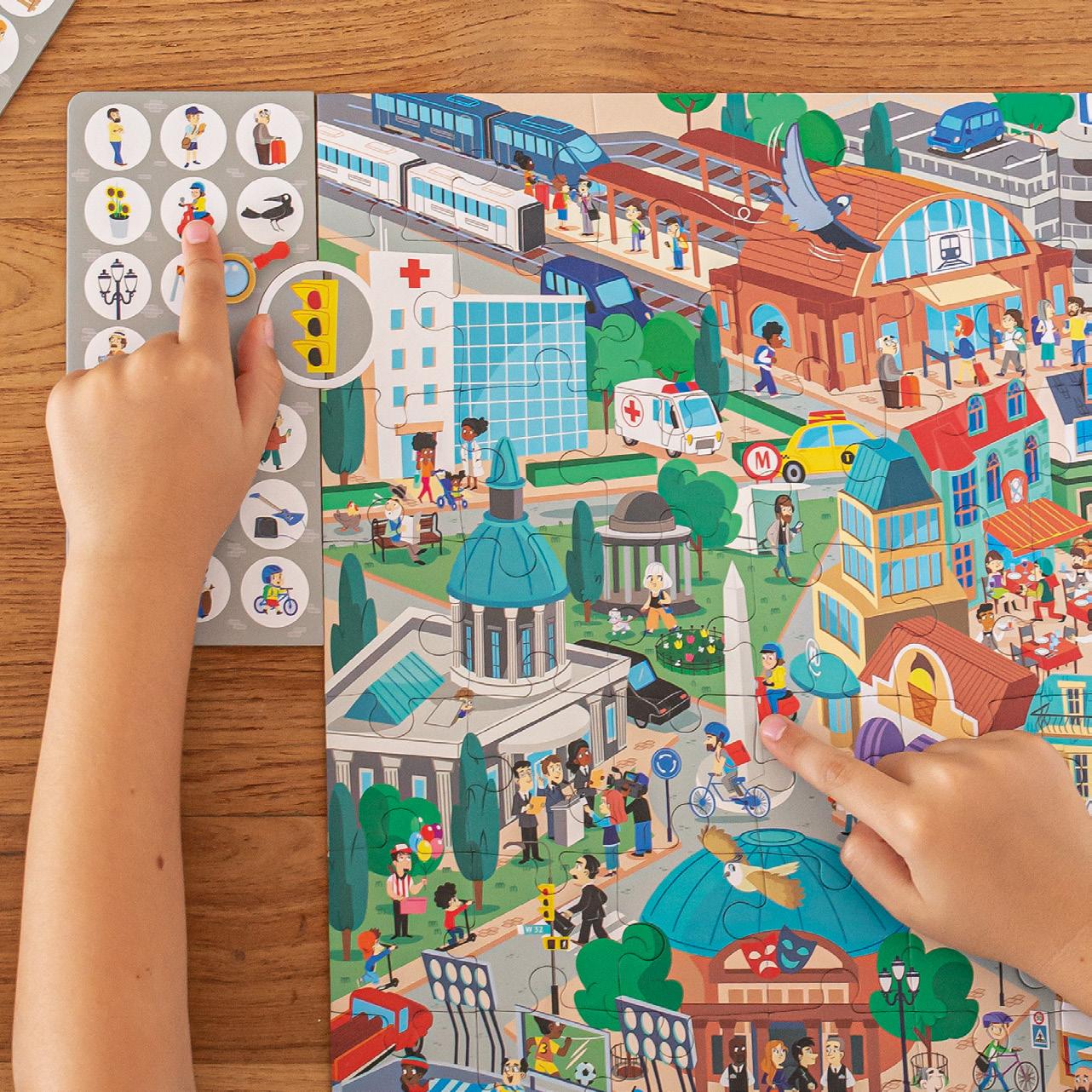 Content: 5 XXL pieces | 1 sheet of educational stickers Ø 2,5 cm | Size of the piece: 17,5 x 17,5 cm
