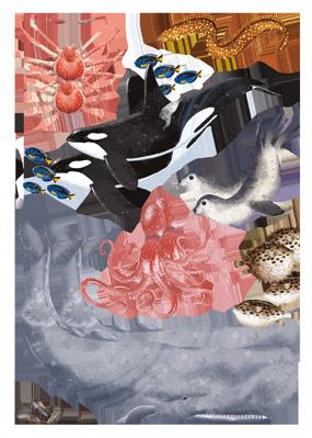 Identify animals with their habitat by decorating landscapes with educational stickers