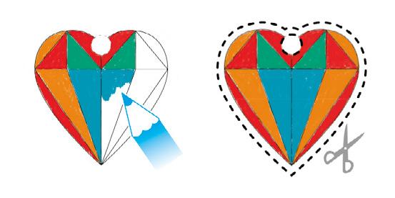 Complete the drawings of the cards with the sheets of transfer paper: use the plastic tool and fill them in with the metallic paper of the right color