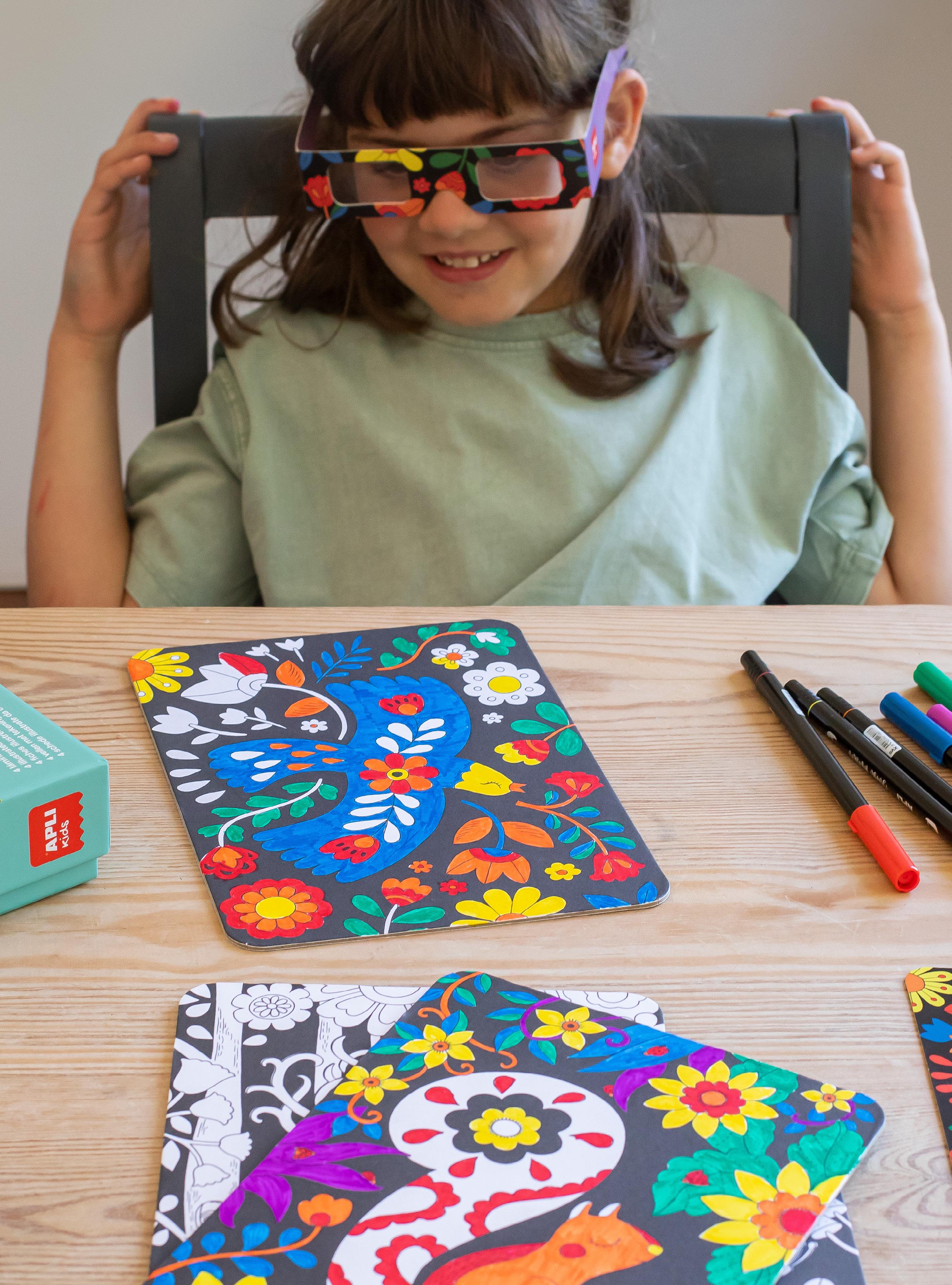 Content: 4 illustrated cards | 6 markers | 3D glasses | 4 guide cards with examples | Languages: ESP, EN, FR, NL, IT, PT, GR, HU, CZ, RO, PL, RU, FI, HR, SE, DE, CAT