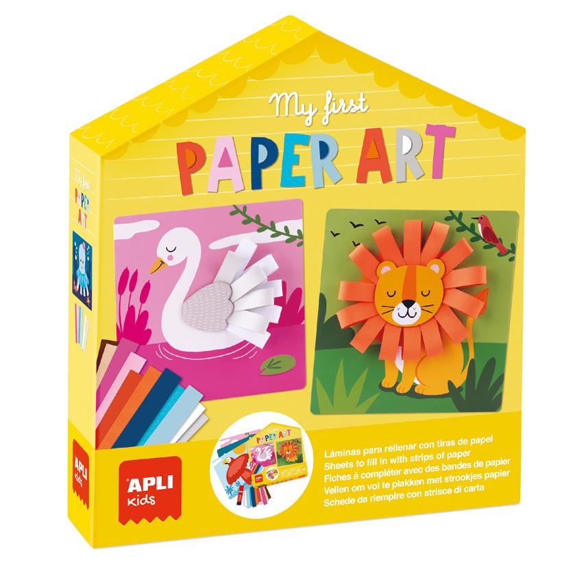 Content: 6 illustrated cards | 73 pre-cut strips of paper | 1 glue stick | 1 book with instructions and examples