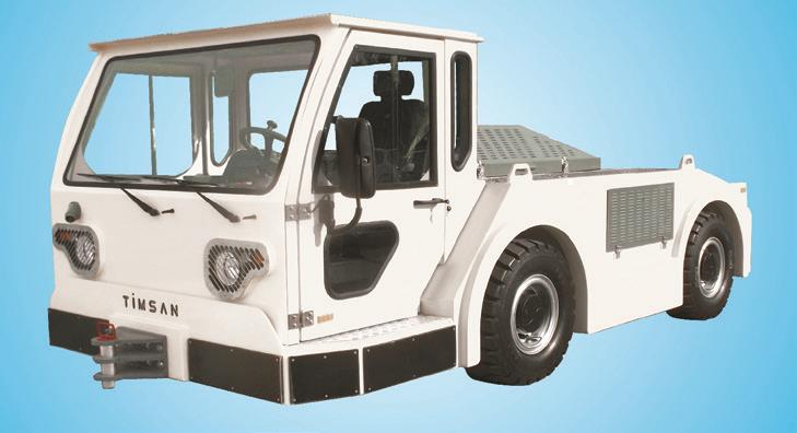 The TIM80 Aircraft Tow Tractor has a DBP of 80 kN and provides a towing capacity up to 114 tons on wet concrete and a 1% slope. With its compact, robust, durable chassis and high capacity powertrain, the TIM80 offers a sound/vibration insulated cabin with windows on all sides, instrument panel and ergonomic, versatile and comfortable working space for the driver and passenger. The TIM80 provides tight maneuverability capabilities through its 4 Mode Steering System (F2WS-R2WS-4WSCrabSteering) and overall dimensions. A dual independent breaking system is provided for safe braking during towing operations.