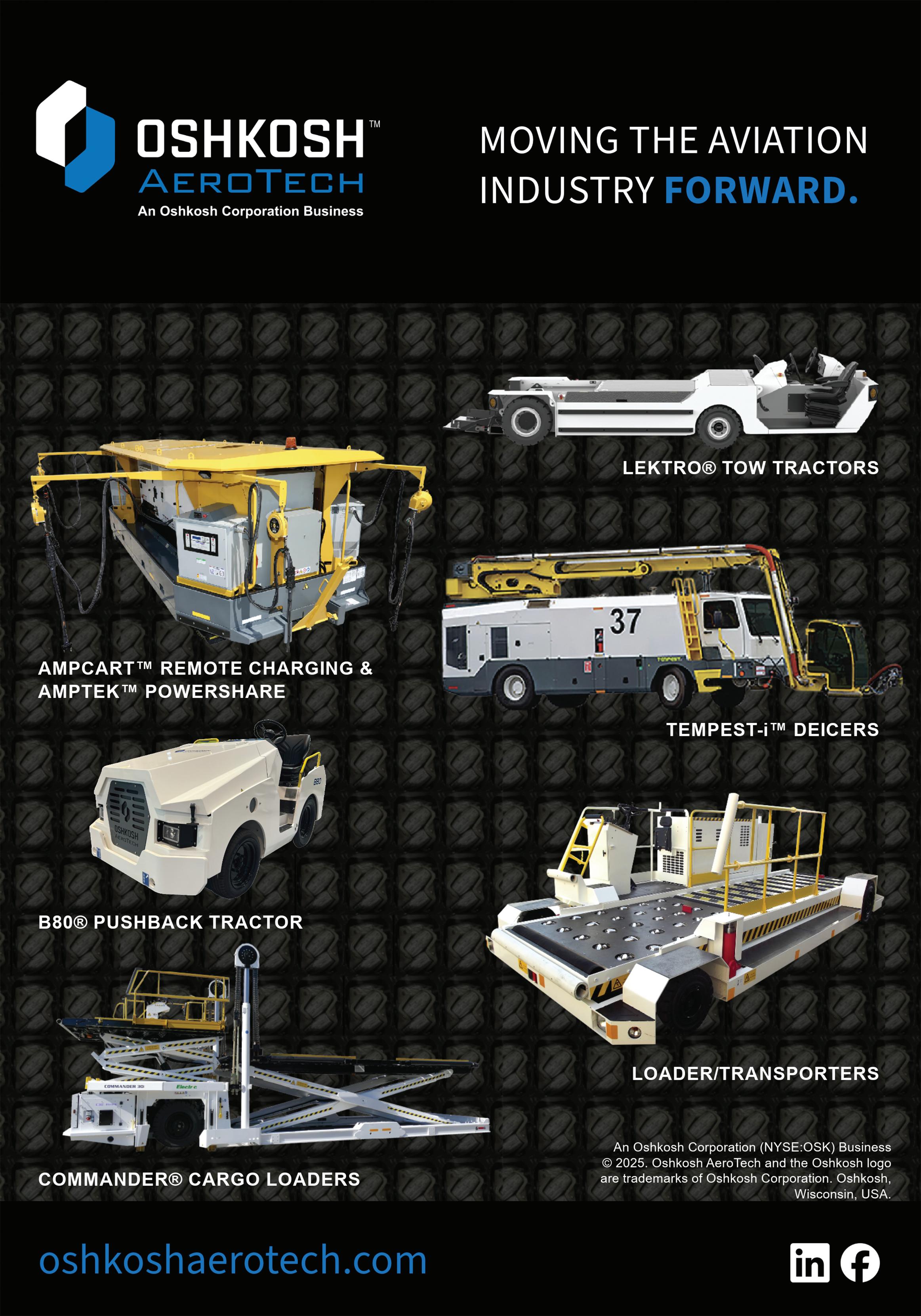 Oshkosh AeroTech says its presence at CES emphasized its role in shaping the future of aviation through advanced ground support and gate equipment technologies, including:
