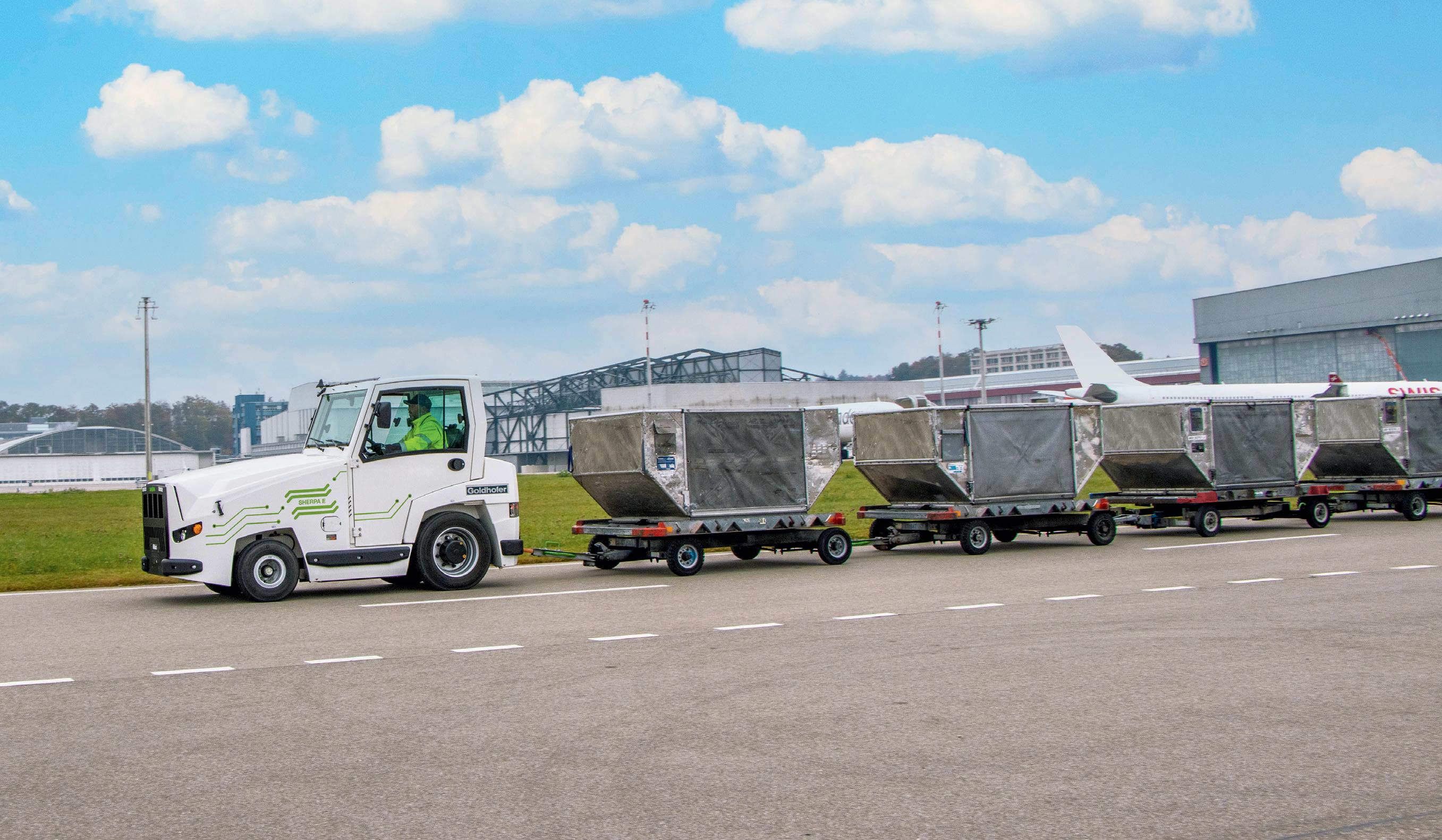 Royal Schiphol Group, in collaboration with KLM, is testing an all-electric, self-driving baggage vehicle from Aurrigo International plc to streamline baggage transport so luggage from passengers with long layovers can be delivered from the aircraft to a temporary, secured storage location.