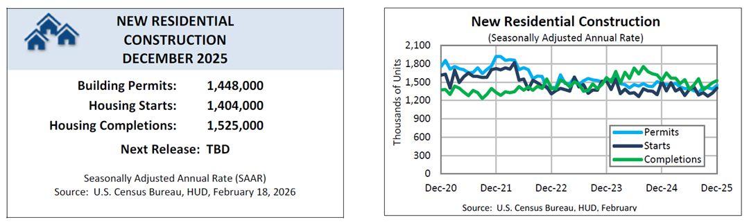 Housing data also surprised to the upside last Wednesday. The Census Bureau reported that overall housing starts increased 6.2 percent in December to an annualrateof1.404millionunits,thehighestsinceJuly.Single-familystartsrose 4.1 percent to 981,000 units, while multi-family projects climbed 10.1 percent to 402,000units.Housingstartsmeasurenewresidentialconstructionandserveas a leading indicator because homebuilding supports employment, materials demandandhouseholdformation.