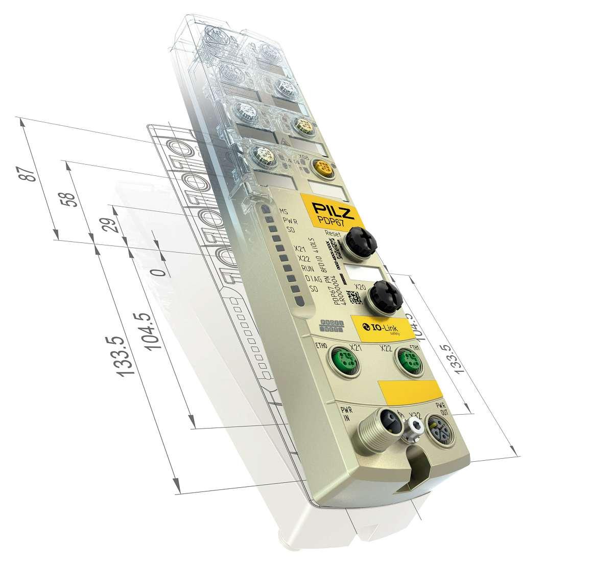 beiden sicheren Eingänge SI13 und SI14 als EDM-Eingänge als Rückführkreis zur Schützkontrolle ist möglich. Neben den (sicheren) Eingängen verfügt das Modul darüber hinaus über zwei elektronische sichere Ausgänge (zwei Freigabekreise) mit erhöhter Verfügbarkeit. Die sicheren Ausgänge (bis PLe) lassen sich bei Bedarf auch als Standardausgänge konfigurieren. Das ASi-5 Safety E/A Modul BWU4277 von Bihl+Wiedemann, das nur eine ASi-5 Adresse belegt, besticht aber nicht nur durch seine umfangreiche Ausstattung, mit der sich die Kosten für sichere Ein- und Ausgänge an ASi optimieren lassen, sondern bietet mit einer Modulbreite von nur 22,5 mm auch ein erhebliches Einsparpotenzial im Schaltschrank.