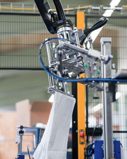 dukten der joke mechanix GmbH zählen unter anderem der „joke Wicketer“ zur Herstellung von Seiten-Trennnaht-Klappenbeuteln und das „Robo Pack System“ für deren vollautomatisierte Verpackung.