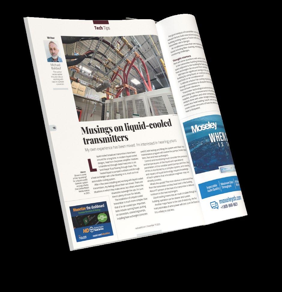 I read Michael Baldauf’s article in November about liquid cooling. I work with very high-power RF amplifier systems for particle accelerators such as at the Los Alamos Neutron Science Center and previously worked in broadcast engineering and transmitter design at Broadcast Electronics.