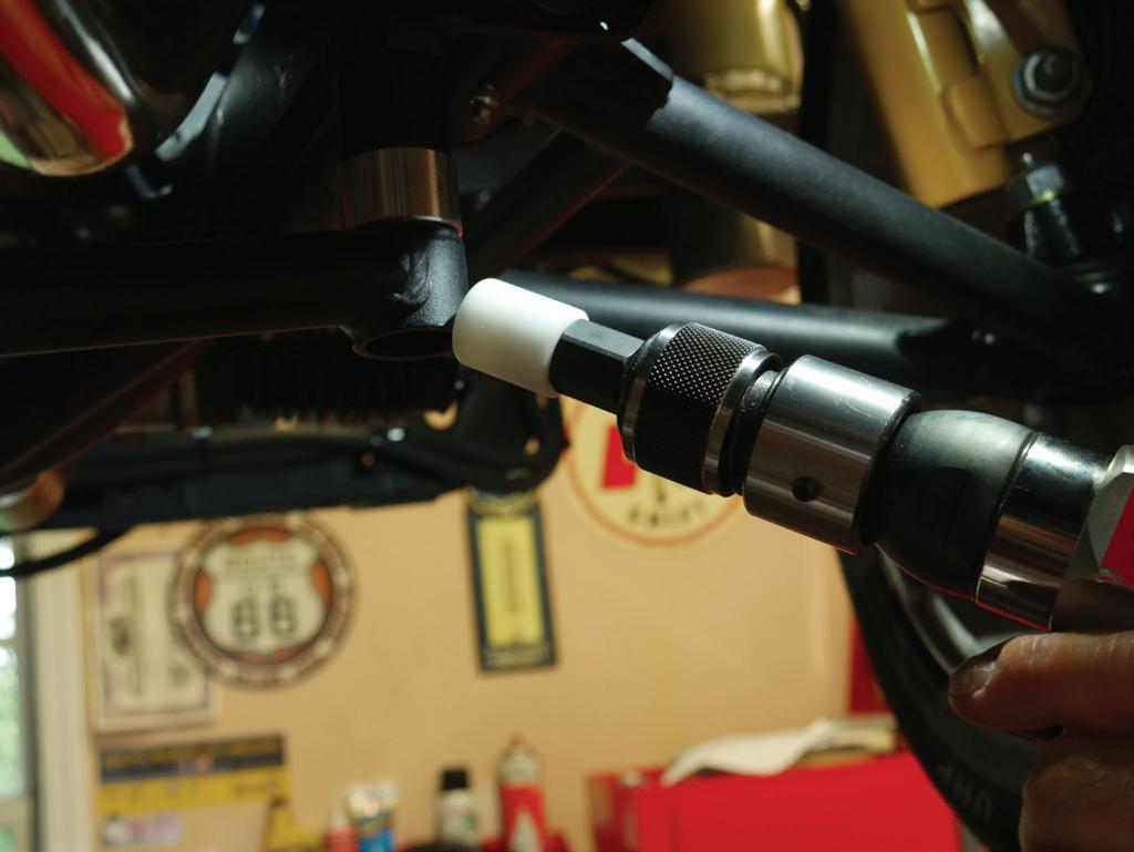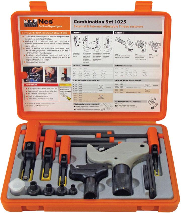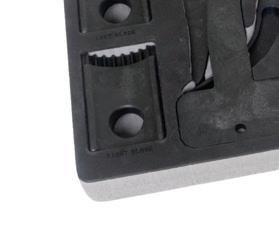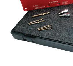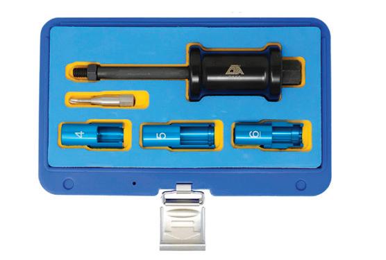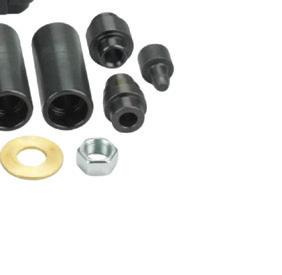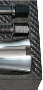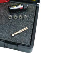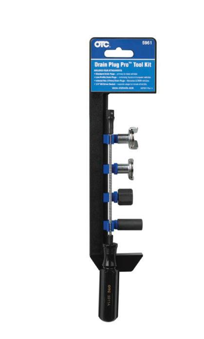 The OTC Drain Plug Pro Tool Kit , No. 5961, features an interchangeable design. The kit includes attachments for standard drain plugs, lowprofile drain plugs, internal hex drain plugs (17mm), and 1/4” hex bits. It can be used with any 1/4” square drive socket, and helps users safely remove oil pan drain plugs by avoiding contact with hot oil and preventing them from dropping drain plugs and other fasteners. The flexible shank with 1/4” square drive helps remove or thread smaller fasteners even in hard-toreach places. Contained on a handy socket rail for hanging or tool drawer storage.
