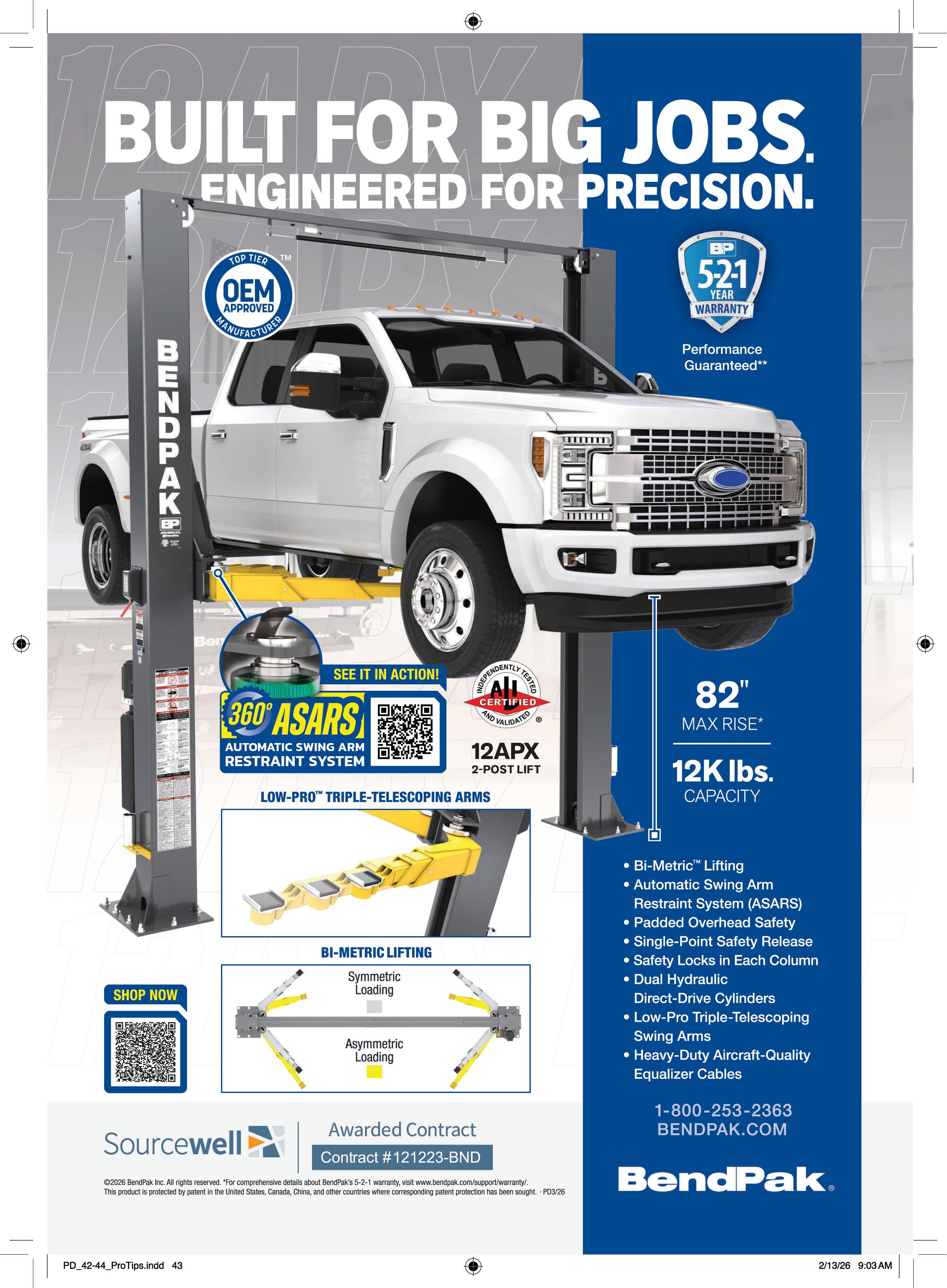 The latest lineup from APEX by BendPak keeps affordability in mind when it comes to shop equipment. The new line includes two-post lifts, tire changers, wheel balancers, and accessories.
