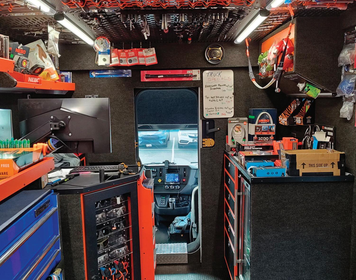 difference between when he first started and now is the volume of tools and equipment that goes through a truck. In the past, he explains that tool trucks largely carried hand tools like sockets, wrenches, and screwdrivers as well as toolboxes, but now, he’s got A/C machines, scan tools, and cordless power tools.