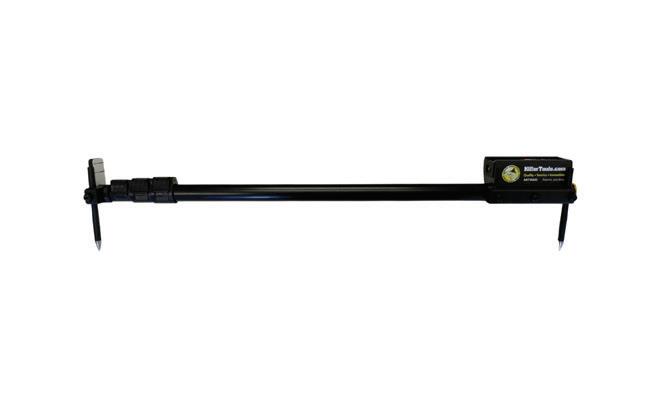 laser accuracy from 1.2” (30mm) to 94” (2,387mm) with an SAE and metric digital readout. Aluminum telescoping sections with cam locks improve handling and reduce sag, and the adjustable laser tray enables measurements anywhere along the tram with no fixed zero-point. The set includes two nylon storage bags, a shortening attachment, two 5” pointers, and two 12” pointers.