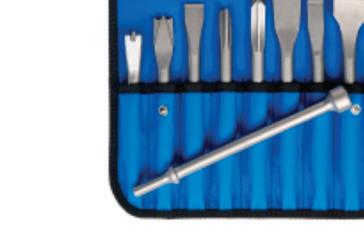 The Ajax Tools 9-pc Master Chisel Set, No. A9029, offers a wide range of professionalgrade, American-made chisels. Each chisel has been selected to give the technician the ability to complete the most demanding applications necessary to get the job done. This set includes a scraping chisel, bushing splitter, claw ripper, muffler cutter, panel cutter, flat chisel, tapered punch, rivet cutter, and kwik cutter chisel.