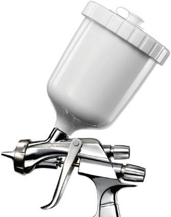 The SUPERNOVA Spray Gun, No. LS400, from Anest Iwata, is designed to deliver a consistent droplet size when atomizing. This, combined with the flat, even SUPERNOVA pattern, helps reduce application issues. All SUPERNOVA guns are equipped with stainless steel fluid passages ideal for any type of material, solvent-borne or waterborne. The gun’s up angle design guarantees balance regardless of cup size. The large thread pattern of the air-cap makes it both robust and easy to remove. New, larger grip points on the outside of the air cap ring facilitate quick removal and refitting after cleaning. The responsive trigger action gives the painter stable air flow control during application. Accurate air pressure can be set with either the air stroke or the fluid stroke.