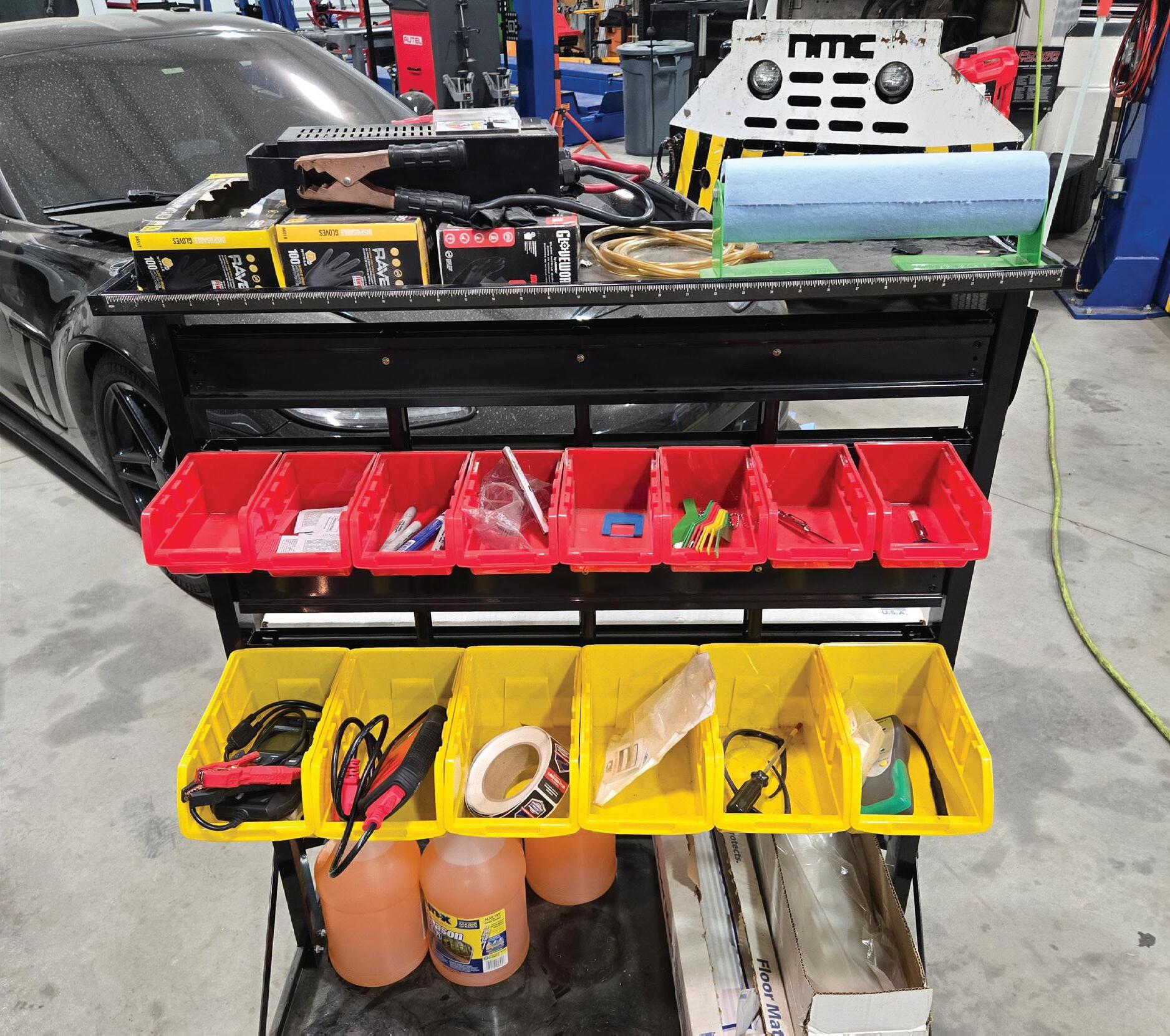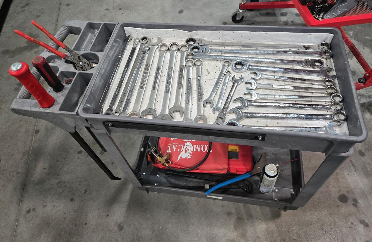jump pack, and a shelf. On the other side, I would probably say 80 to 90 percent of my daily use tools are in there, so if I need to work on another rack in the shop or I need to work in the parking lot across the way, I can do most of my work out of that cart, and I feel like that’s a huge advantage.”