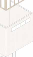 La zona de día y la zona de noche no están separadas por paredes ni puertas, sino por una ligera diferencia de nivel que marca la transición entre dos momentos del día. Ese desnivel ayuda a que cada parte del módulo tenga su propio ambiente: más abierto y luminoso para las actividades como estudiar o trabajar, y más recogido y privado para descansar.
