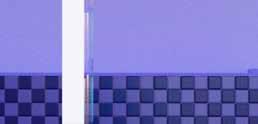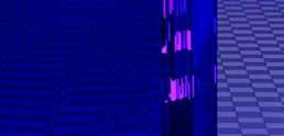 Para realizar la proyección de estos dos mundos, se ha aplicado la utilización de una malla de cuadros en tonos azules que llega hasta la entrada, representa aquellos lugares de los 80 's como cafeterías y discotecas.