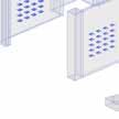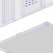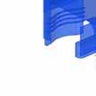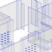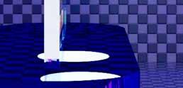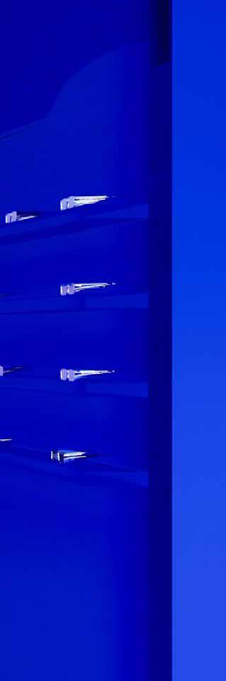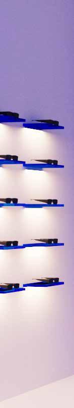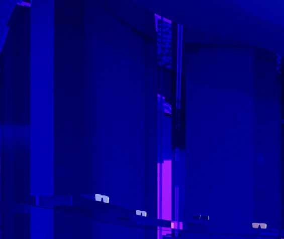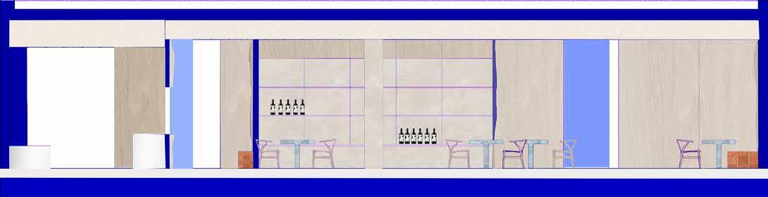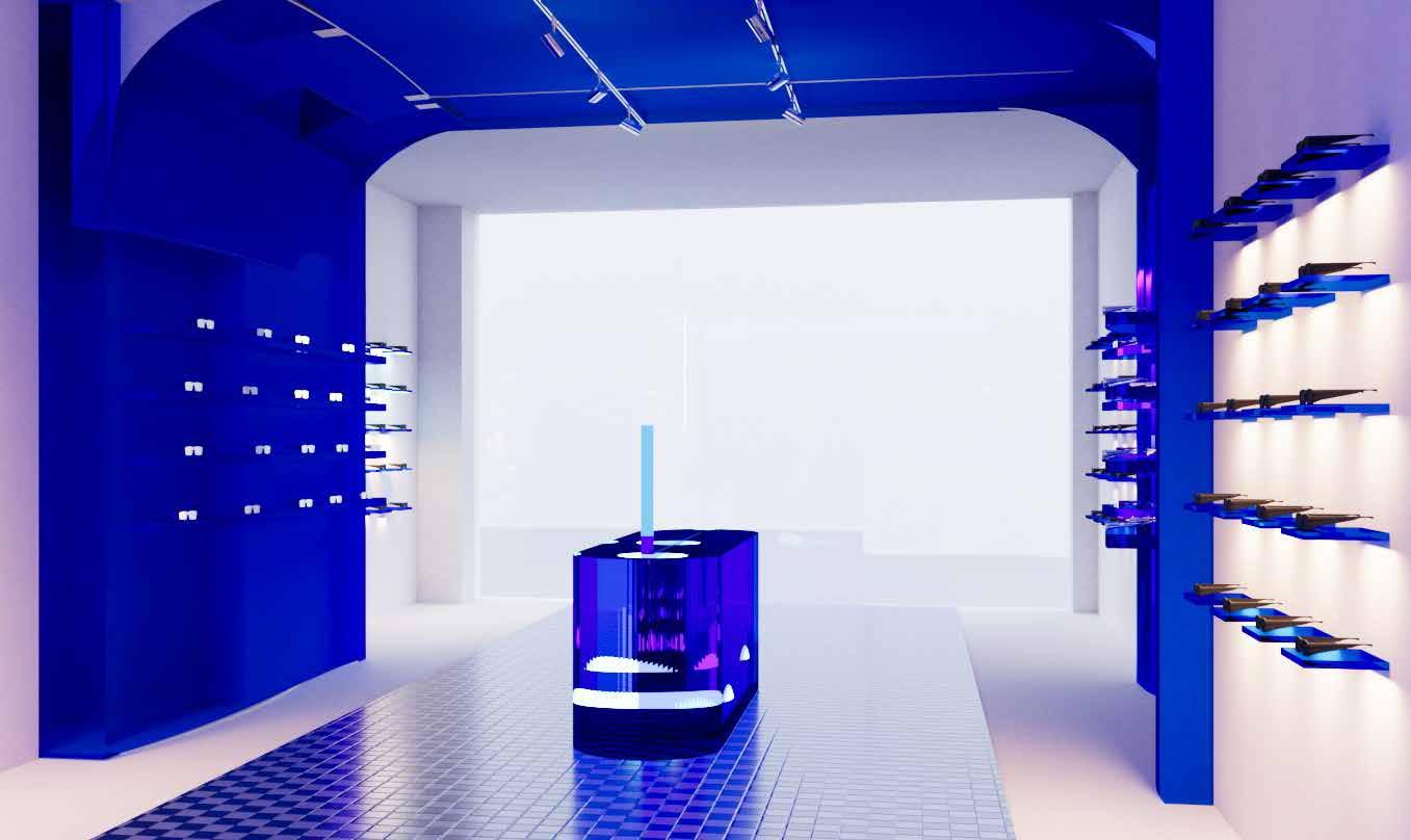 Por último, el proyecto cuenta con una zona con azul vibrante de metacrilato que es dedicada a aquellas nuevas colecciones. Esta zona podría considerarse la zona ¨estrella¨, la cual ha sido desarrollada con formas orgánicas, que simulan el transcurso del tiempo, uniendo también la primera y segunda zona expositora de gafas.
