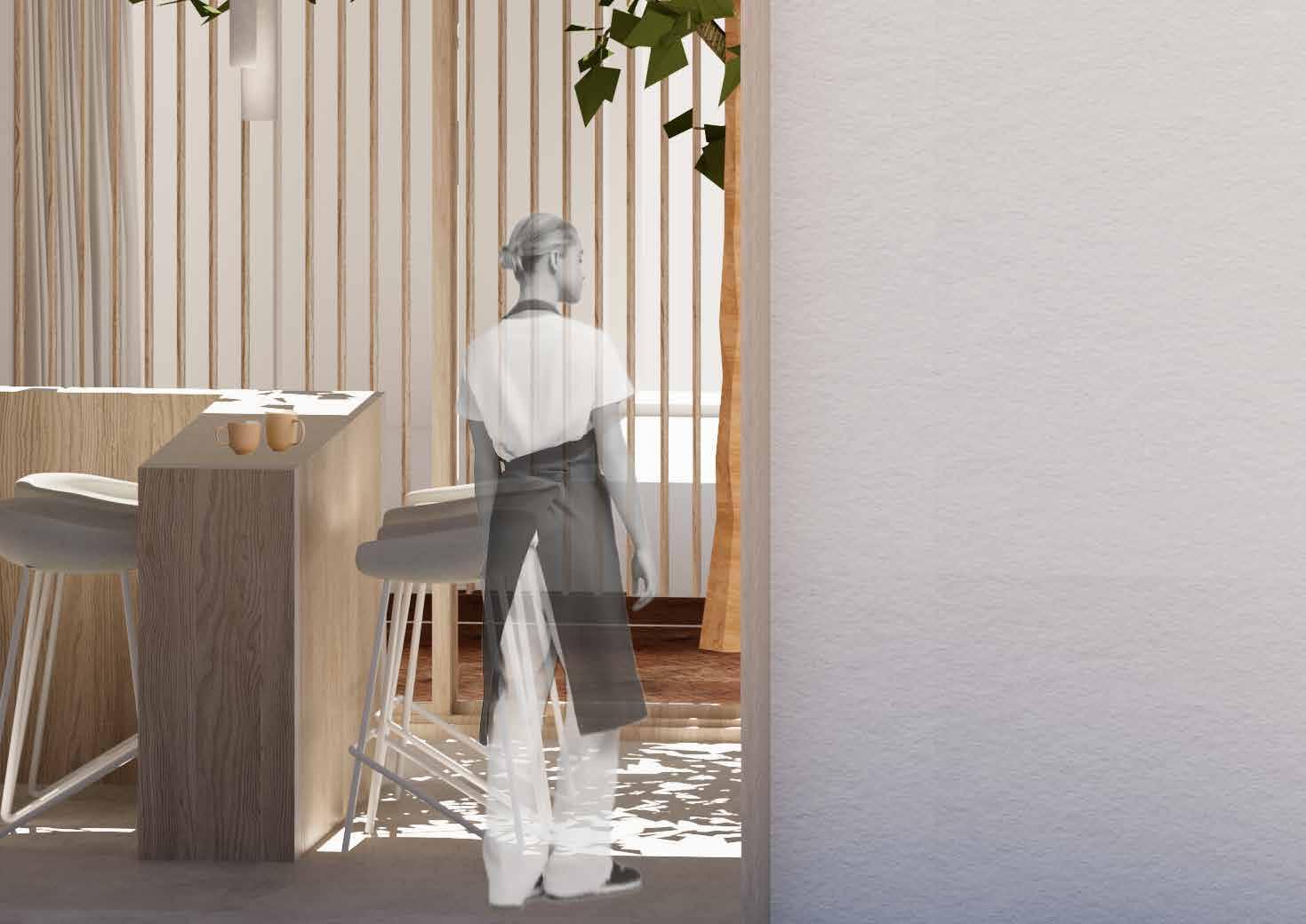 En conjunto, la propuesta busca que el espacio, aunque pequeño, tenga ritmo y carácter. Que el cuerpo note que cambia de actividad al desplazarse por él. Y que el usuario pueda sentirse cómodo, acompañado por la luz, la madera y un orden simple que no impone, pero que guía.
