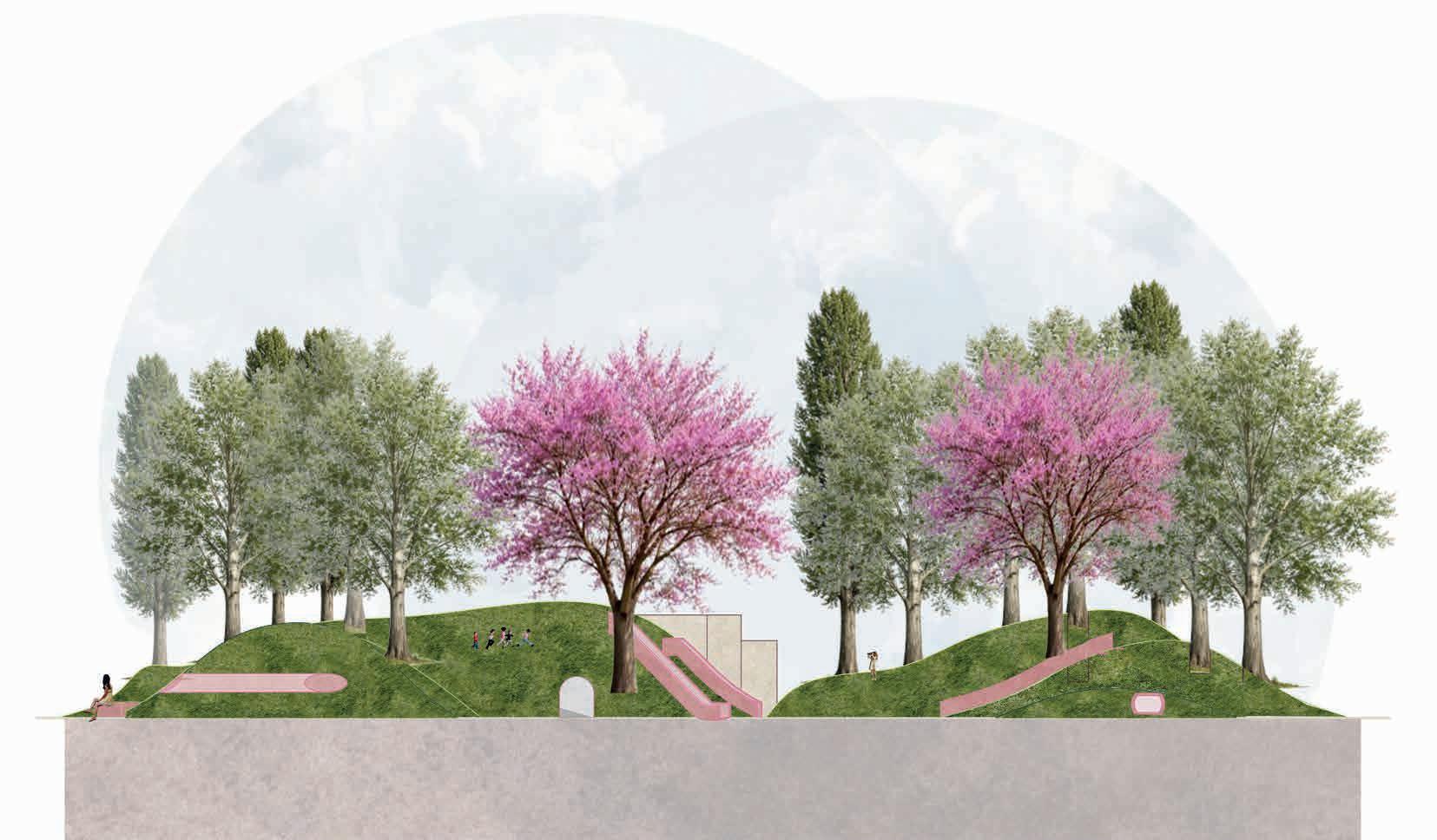 El proyecto nace de una necesidad muy concreta: crear un lugar donde poder parar y respirar dentro del ritmo acelerado de la ciudad. No se busca el silencio absoluto ni un espacio aislado, sino un parque vivo, donde juegan niños, pasean vecinos y la gente se sienta a descansar, pero donde el ambiente se percibe más calmado, más amable y más humano.
