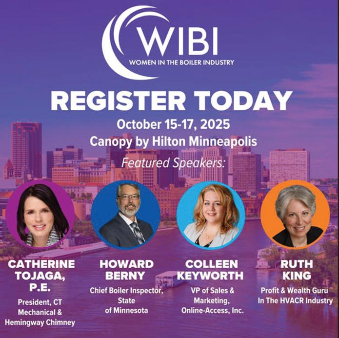 With that in mind, four featured speakers have now been confirmed for the event: Catherine Tojaga, PE, President of CT Mechanical & Hemingway Chimney; Howard Berny, Chief Boiler Inspector, State of Minnesota; Colleen Keyworth, VP of Sales & Marketing, Online Access, Inc.; and Ruth King,