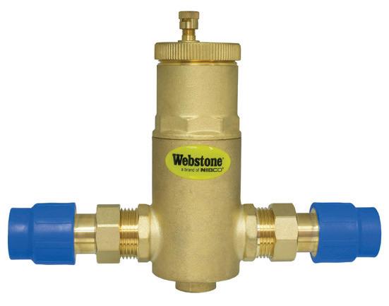 NIBCO announces new Webstone G-Series products with interchangeable end connections and accessories to customize installation. The PP-RCT G-Union fittings are available in sizes 1/2 in. through 2 in. and are compatible with PP-R and PP-RCT piping systems. The new FTG G-Union fittings feature a type K copper tailpiece and are available in 1/2 in. through 2 in., including reducing sizes. The horizontal mount air separator is now available with G-Thread ends, which are compatible with a wide assortment of G-Series fittings and accessories for a custom installation. All products are suitable for plumbing and heating applications. NIBCO