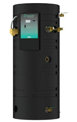 Conquest condensing commercial water heaters from PVI feature a submerged combustion chamber and a heat exchanger with a dimpled array of fire tubes fabricated entirely from durable, corrosion-resistant AquaPLEX duplex stainless-steel alloy. The upgraded straight, fire-tube heat exchanger design increases thermal efficiency to 98% across all inputs. The pump is now strategically positioned at the front and side of the water heaters for easier access and improved reliability. Available in a range of inputs from 399 MBH to 1200 MBH, with natural gas and propane options, and indoor and outdoor configurations.