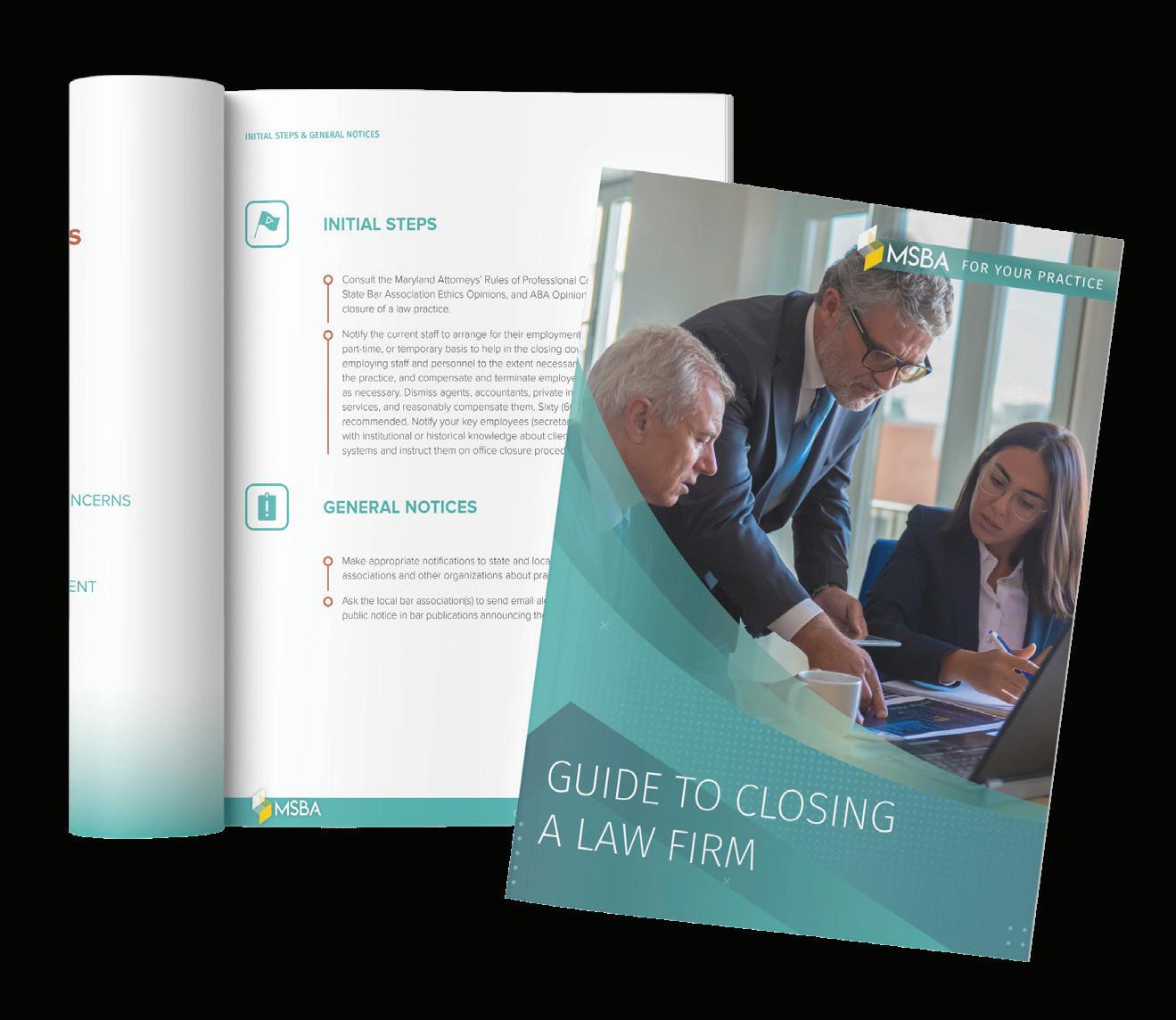 Statements or opinions expressed herein are those of the authors and do not necessarily reflect those of the Maryland State Bar Association, its officers, Board of Governors, the Editorial Board or staff. Publishing an advertisement does not imply endorsement of any product or service offered.
