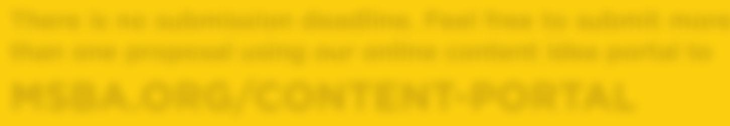 The MSBA staff team will be focused on delivering on several initiatives. We are working to revamp our marketing to take a more personalized approach to recruit new members and retain our existing members. We will continue to expand our library of course books and treatises and add more live and OnDemand CLE courses to our growing catalog. We will remain the best value in State Bar Association membership, by including digital CLE of 90 minutes or less with your membership as well as up to two complimentary sections.