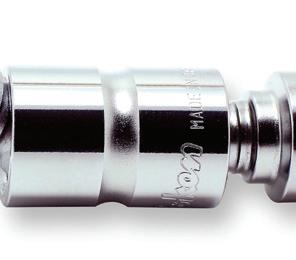 The Ko-ken Pinless Double Universal Joints are connected with mutually engaged hexahedrons, which disperse the load across the whole outer circumference of the tool. The ball mechanisms within the joints provide fluid motion and rotation. The joints have the same durability as traditional pin-type joints and are capable of 60 degrees of rotation.