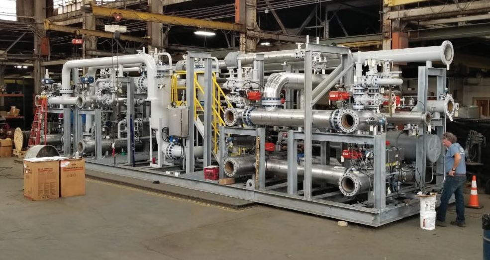 ▲ THE SWITCHFIRE BOILER from Cleaver-Brooks is a high-mass, fully condensing firetube boiler constructed of 316L stainless steel. The boiler is designed to handle variable flow pumping with a low waterside pressure drop and large water volume. With its dual-fuel (natural gas and #2 fuel oil back-up) capabilities, as well as a variety of other fuels, the SwitchFire is well suited for healthcare applications and other facilities requiring redundancy with alternate fuels.