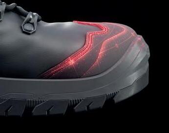 ■ SHOCKSHIELD-etuvasara antaa lisäsuojaa jalkineen kärjelle ja kumivahvistettu ulkopohja vahvoilla nastoilla antaa parhaan pidon vaativissakin maastoissa