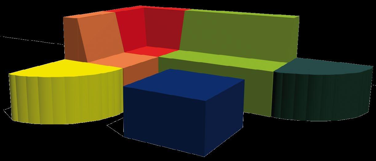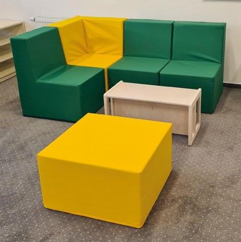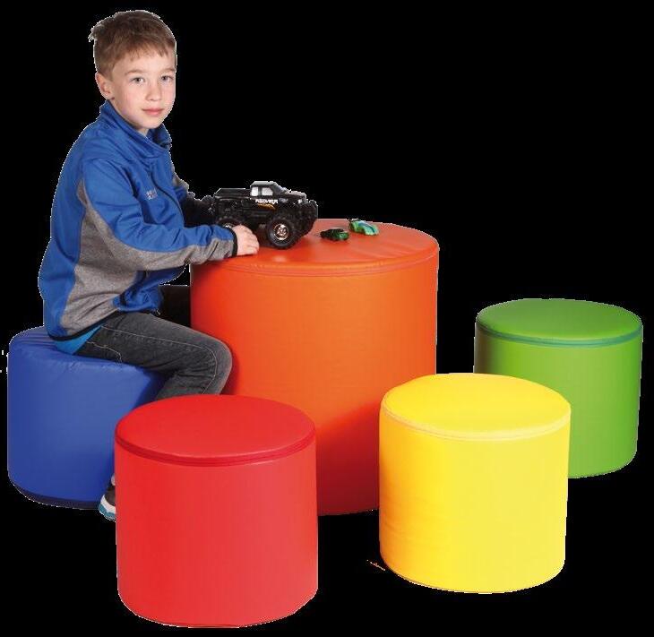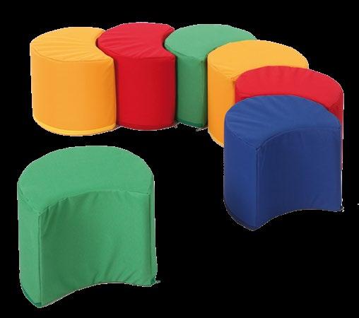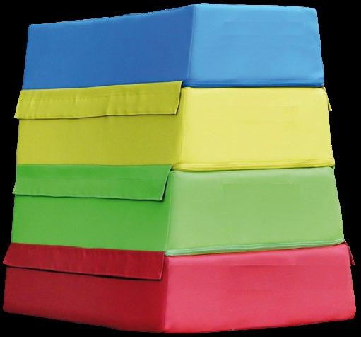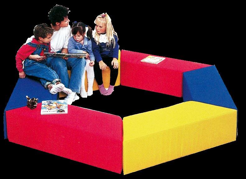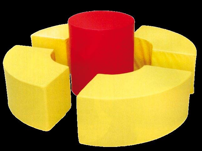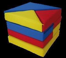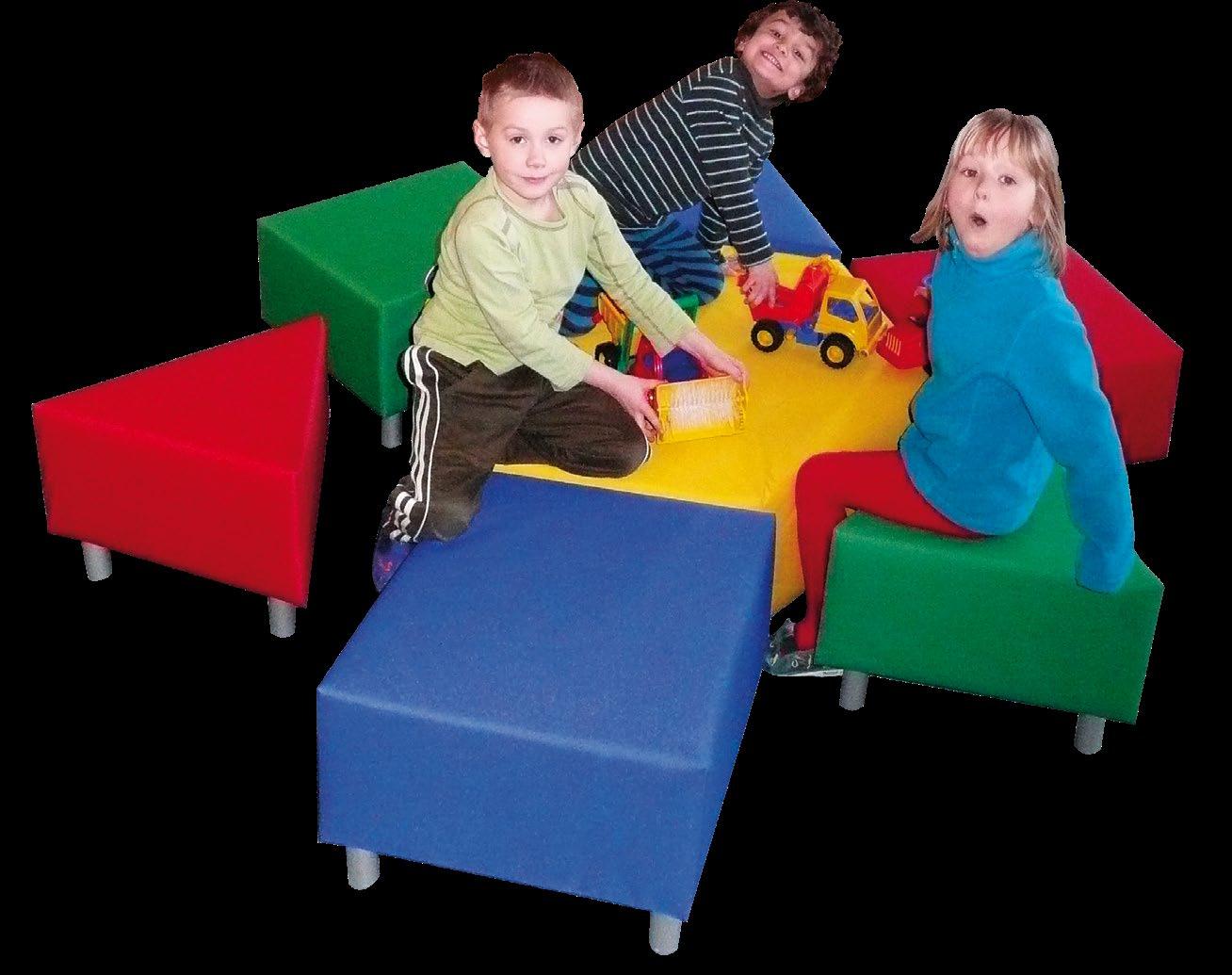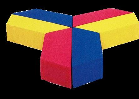 Variabilní sedací souprava VARIO pro výuku, hraní, stavění a ležení. Kombinace rovnostranných trojúhelníků o straně 50 cm skýtá nepřeberné množství sestav. Provedení – látka kortexin červená, modrá, zelená, žlutá. Kostra lamino, sezení tuhý molitan. Stříbrné kovové nožky o průměru 50 mm a výšce 8 cm. Celková výška prvků je 34 cm. OMYVATELNÁ LÁTKA.