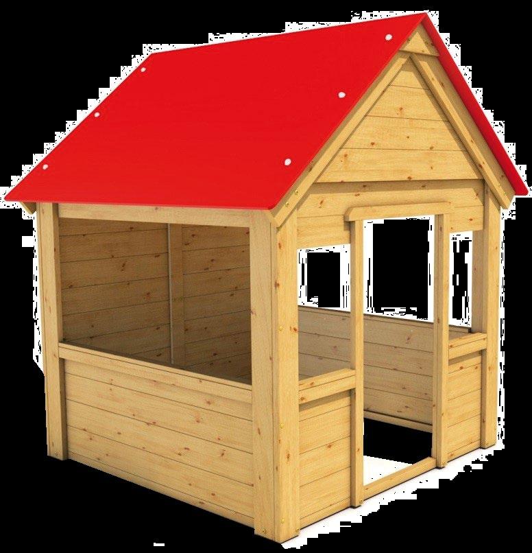 DĚTSKÝ DOMEK PAVLÍNA MINI 135 × 177 × 135 cm severský smrk domek obsahuje podlahu a kotvení opatřeno středně hnědou impregnací hliníková střecha v červeném provedení 18062 Kč