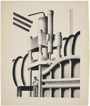 American printmaking is represented by one of the richest and most important surveys in private hands, beginning with Winslow Homer at the end of the 19th century before moving on to the great flowering in the early decades of the 20th, in which the modern city, often New York, was both the setting and the star. George Bellows,John Marin, Howard Cook, Martin Lewis, Louis Lozowick, Benton Spruance and no fewer than five major works by Edward Hopper show artistic reactions to a tumultuous time—as America became the industrial and cultural superpower of the new century. Particularly beautiful are the five prints that represent the complete lithographic work of the American Modernist Charles Sheeler, possibly the most comprehensive group outside major museums.