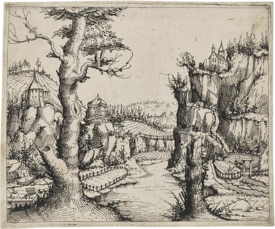 collector. The present example is remarkable not only for its sharpness and rich contrasts, but for the subtle gradations of light and darkness on the smallest scale, which differentiate the foliage of each tree amongst the wooded hillside at upper left.