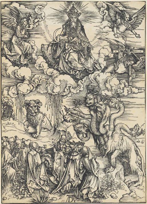 The Holy Family with the three Hares woodcut circa 1497 on laid paper, watermark Imperial Orb (Meder 53) a brilliant, rich and early impression printing very sharply and evenly, with intense contrasts and great depth trimmed to or just outside the borderline in very good condition Block & Sheet: 15¡ x 11¿ in. (389 x 281 mm.)
